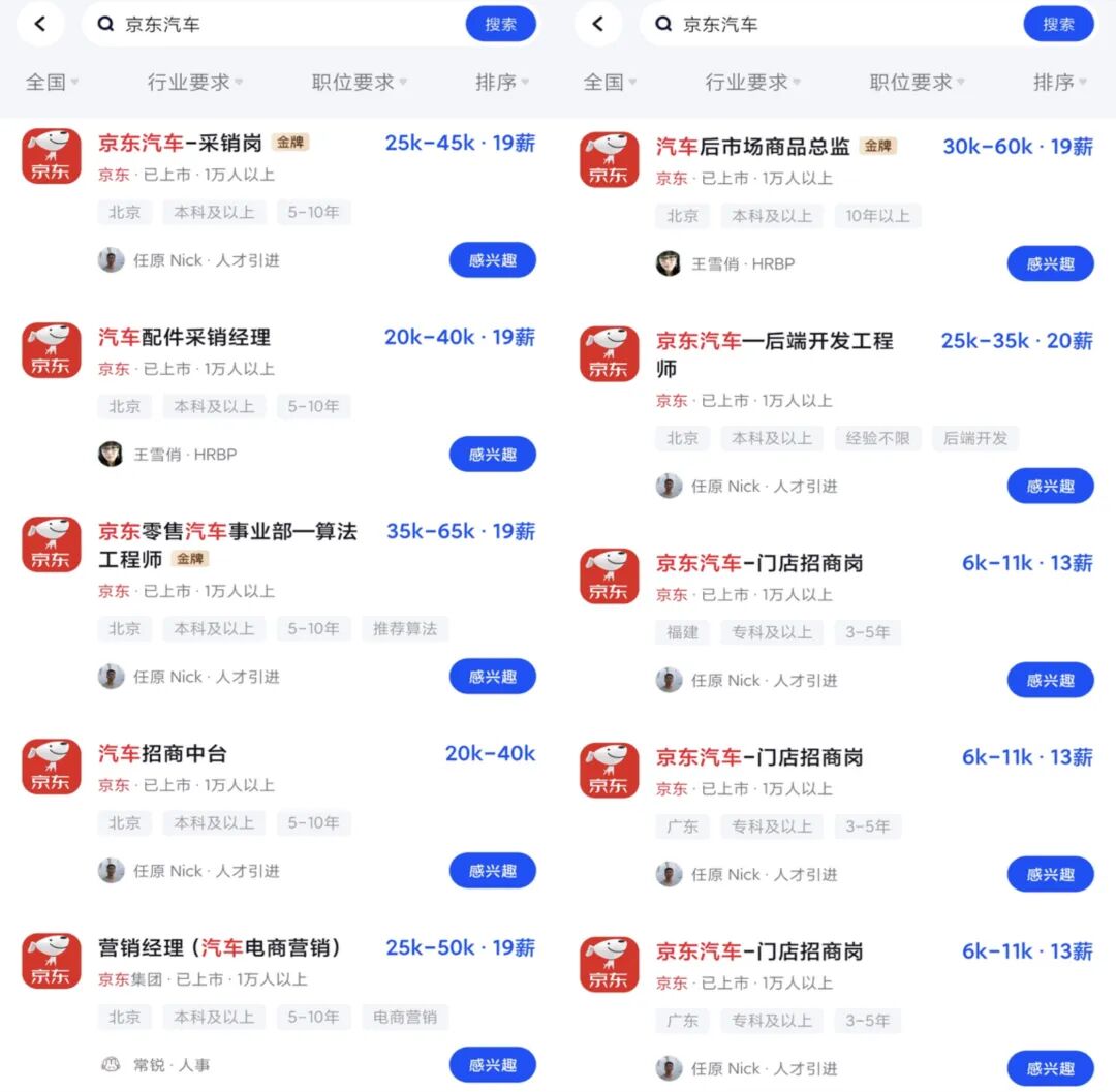 在新車(chē)信息密集曝光的同時(shí),時(shí)代財(cái)經(jīng)注意到,京東汽車(chē)近期在人才招募上也有大動(dòng)作。