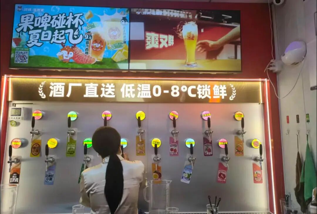 一個(gè)門店一般有2個(gè)員工,負(fù)責(zé)下單、打酒和打包。柜臺(tái)后面就是啤酒售賣墻,上面有十多個(gè)啤酒龍頭,“店員幾乎無需培訓(xùn)就可以隨時(shí)上崗”,飲品報(bào)指出。