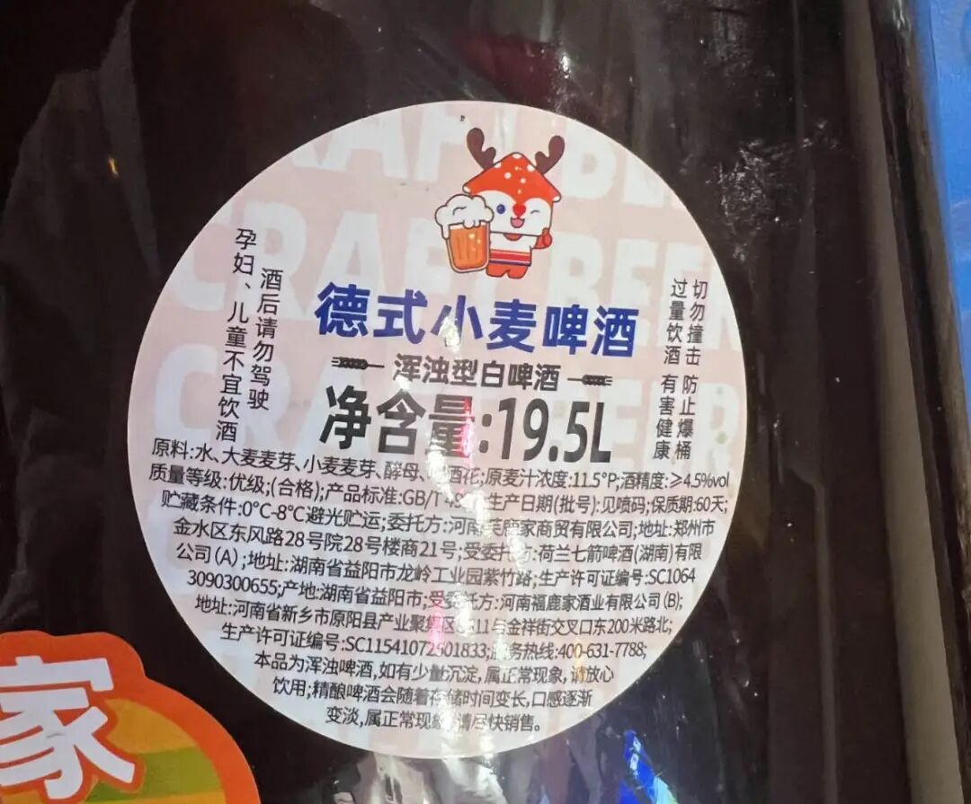 如今在全國開到1400家門店的福鹿家不再在公開場合提及精釀,畢竟官網(wǎng)上所寫的“萬噸級自建工廠”也很難和精釀的小規(guī)模生產(chǎn)劃等號(hào)。于是蜜雪冰城轉(zhuǎn)頭抓住【鮮啤】大做文章,店內(nèi)的宣傳語換成了“酒廠直送,低溫 0-8℃鎖鮮”“不過濾不殺菌,才是國標(biāo)真鮮啤” ,當(dāng)你點(diǎn)完單,店員也會(huì)提醒你要在半小時(shí)內(nèi)喝完。對比超市貨架上的鮮啤保質(zhì)期大約在28天。