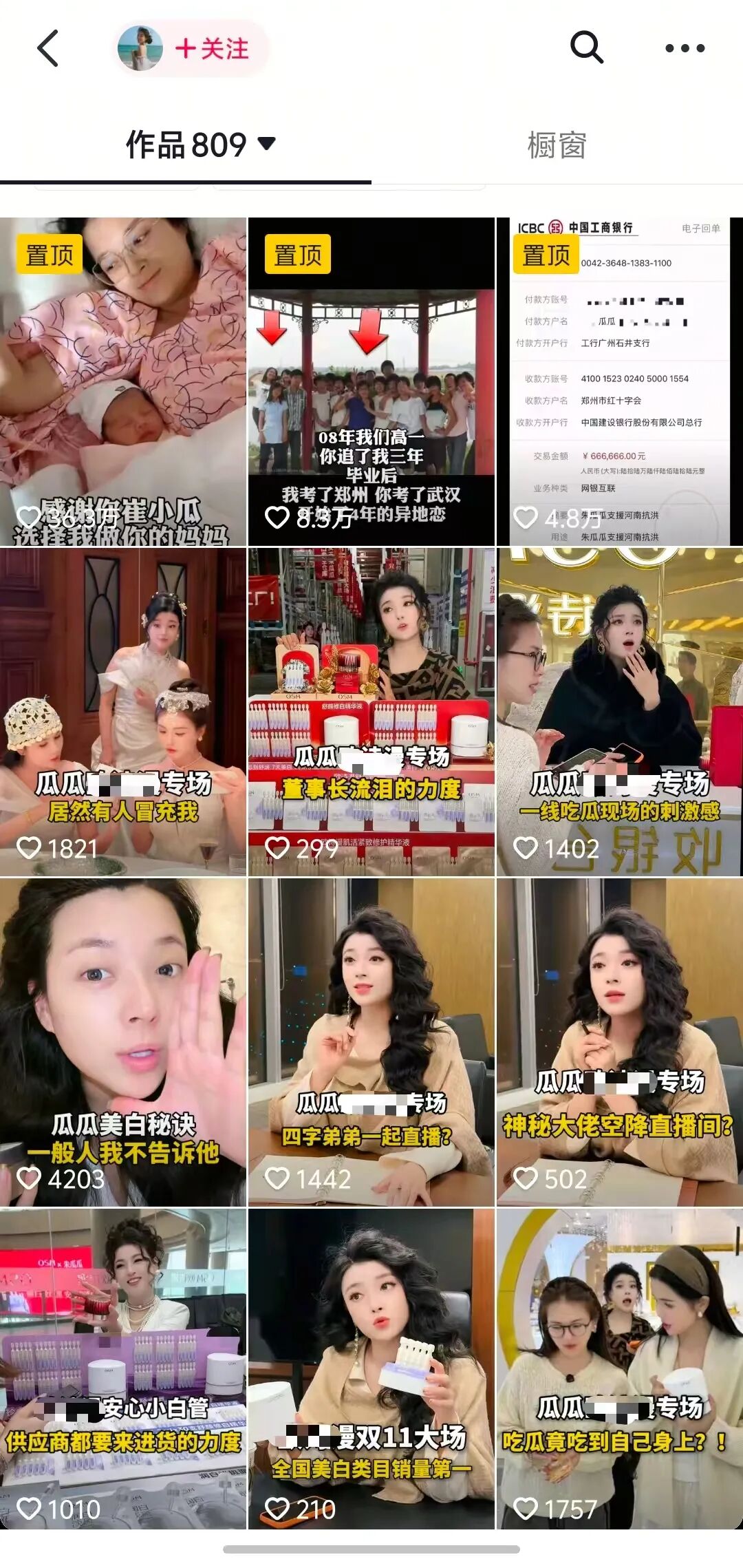 公開資料顯示,朱瓜瓜原名朱珂瑤。2014年她便涉足微商,曾擔任某品牌多系列產(chǎn)品總代理,并聯(lián)合創(chuàng)辦知名微商團隊,積累了早期的選品與用戶運營經(jīng)驗。2017年,她轉(zhuǎn)戰(zhàn)快手,憑借吃播內(nèi)容迅速吸引數(shù)百萬粉絲,隨后順勢開啟直播帶貨。2019年11月,其團隊正式成立“瓜瓜傳媒”,并入駐抖音,開啟新階段的帶貨征程。