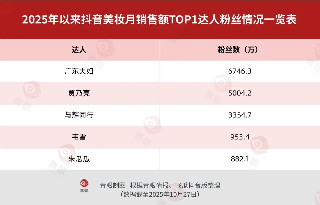 青眼統(tǒng)計發(fā)現(xiàn),2025年前九個月抖音美妝月銷售額TOP10帶貨達人中,朱瓜瓜三次登頂?shù)谝,超越廣東夫婦、韋雪等熱門主播,成為截至目前今年登頂月榜次數(shù)最多的主播。