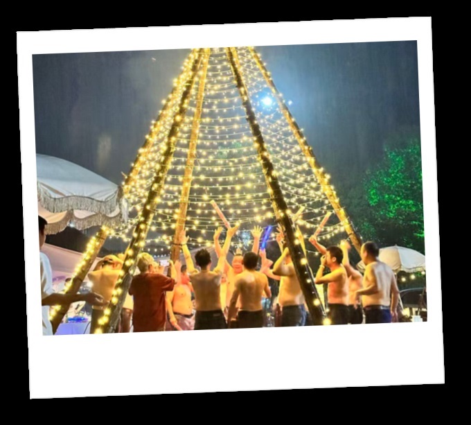 朱文武:我們前一天晚上討論了很多接待方案,因為強哥不在,生怕招待不周。東來哥在我們眼里形象很偉岸,感覺距離很遠(yuǎn)。第二天喝酒的時候,我們都不敢過去敬酒,是東來哥主動過來跟我們敬酒,說“玩得開心、快樂”,可我們還是有點放不開。所以,真的要感謝那場雨,雨下來之后,東來哥開始唱歌,我們一個拉一個地跑出去。東來哥率先把衣服脫了,一下子就把整個氛圍帶動起來了。