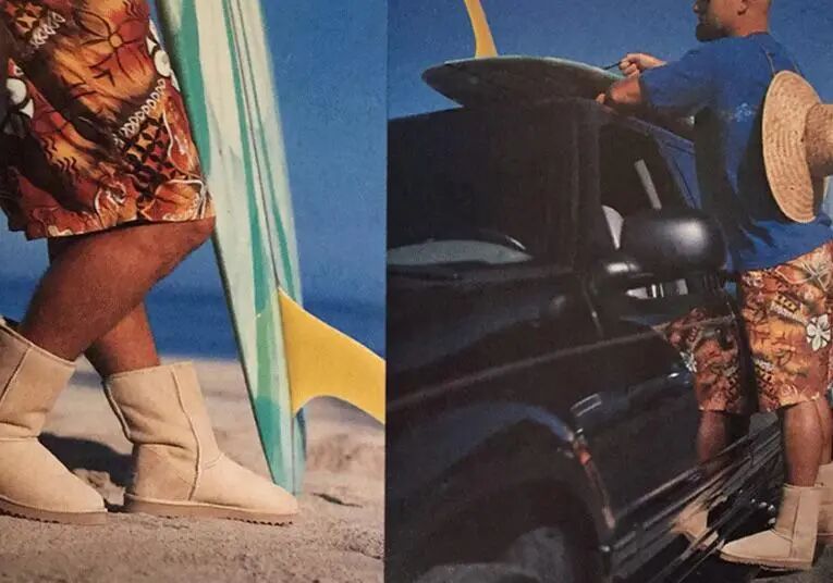 1978年,史密斯將這種“澳洲特產(chǎn)”帶到了美國加州,他將一批羊皮靴賣給了當?shù)氐臎_浪愛好者,結(jié)果大受歡迎。史密斯很快成立了公司,并以“Ugly Boots”為靈感注冊了UGG品牌。不過,這時的UGG僅是在加州的沖浪店里出名,尚未從眾多鞋履品牌中脫穎而出。