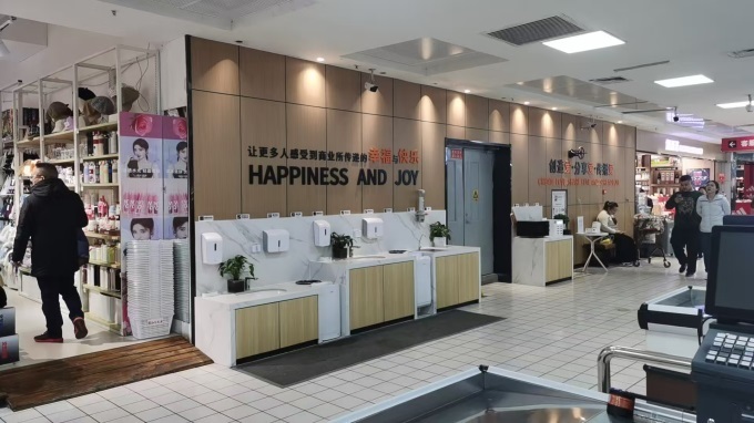 比如說增加洗手池、清潔菜池、直飲水、休息區(qū)、充電站、寵物寄存站等服務(wù)設(shè)施。衛(wèi)生間我們也進(jìn)行了升級,增加設(shè)施設(shè)備,保證全營運時間的衛(wèi)生紙,來提升顧客的體驗。再有就是更換升級購物的工具,寄包設(shè)備、購物車藍(lán),保證顧客的使用需求,還有免費取冰。