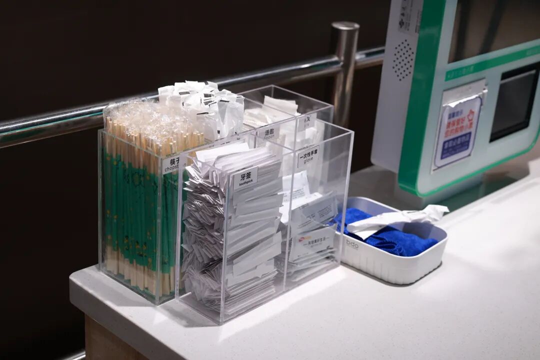 ✔免費(fèi)提供一次性的叉子、勺子、吸管、筷子、濕巾、紙巾、手套、紙杯、牙簽、棉簽、口罩等