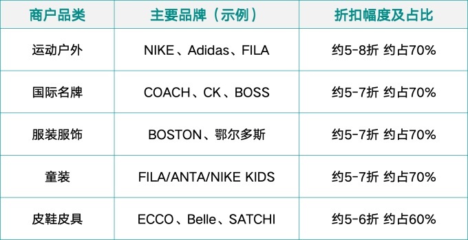 對于絕大多數(shù)貨品,采用聯(lián)營模式,例如國際名品、服裝服飾、運(yùn)動戶外等;