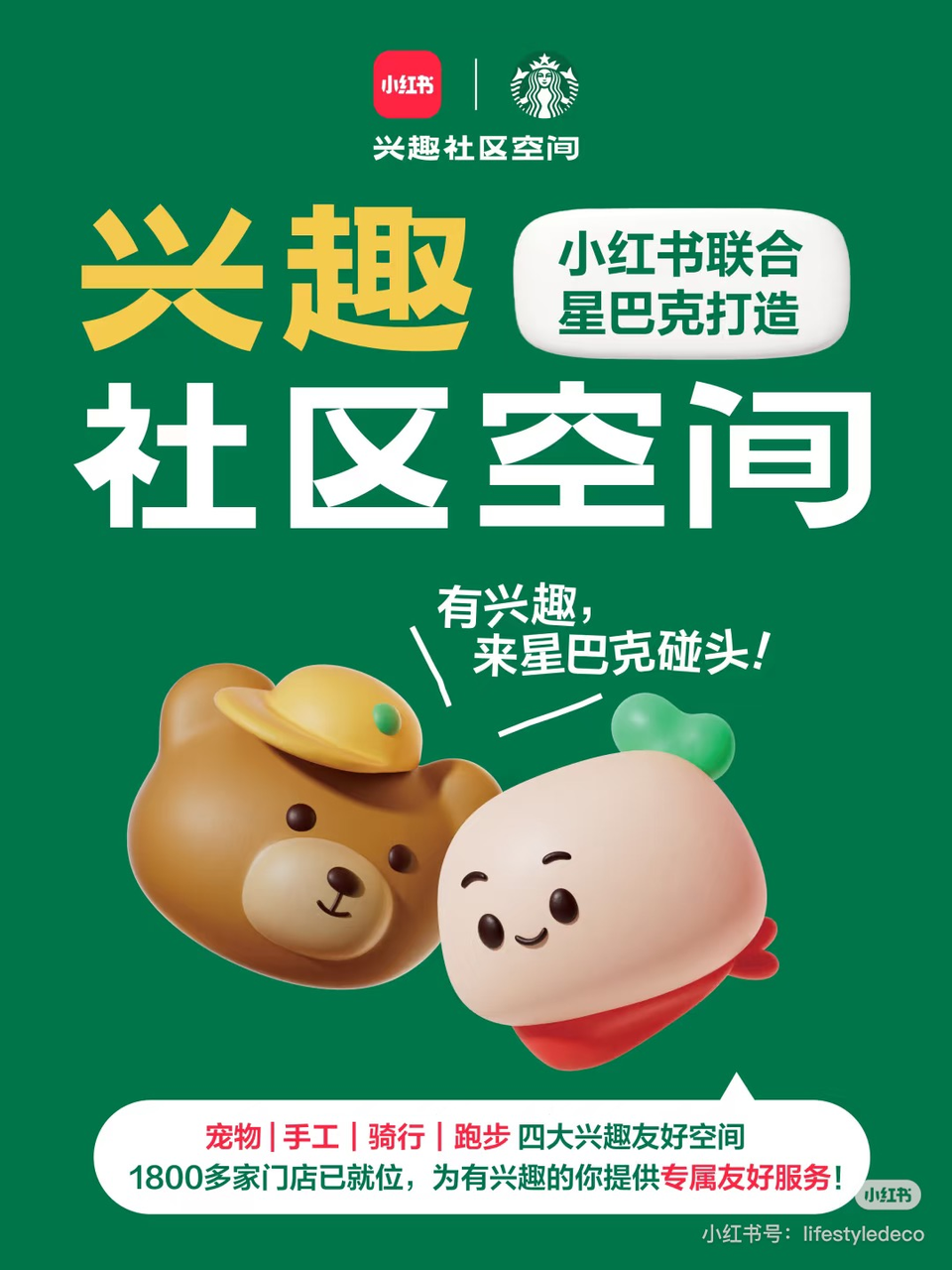 星巴克不會(huì)脫離購(gòu)物中心,但可以在中國(guó)市場(chǎng)可以嘗試尋找新的空間氛圍定位。一個(gè)信號(hào)是,星巴克中國(guó)在攜手小紅書(shū)APP,將全國(guó)1800余家門店升級(jí)為寵物、手工、騎行、跑步四大主題的「興趣社區(qū)空間」,通過(guò)服務(wù)興趣社群,來(lái)強(qiáng)化社交、社區(qū)連接點(diǎn)的定位。
