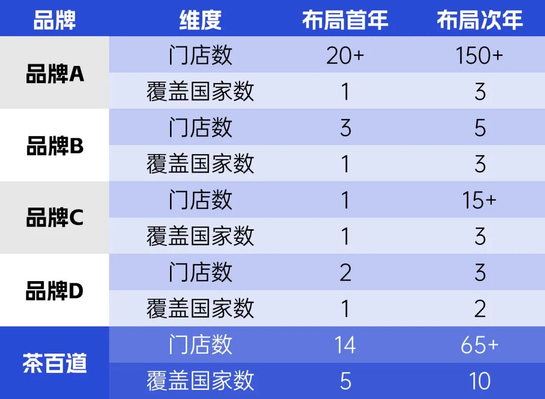 茶百道或許是一個相對特別的樣本。它2024年才正式出海,首站選在并非熱門的韓國,如果橫向對比行業(yè)頭部品牌出海頭兩年的速度,“后來者”茶百道絕對算是“起跑最快”的玩家之一。
