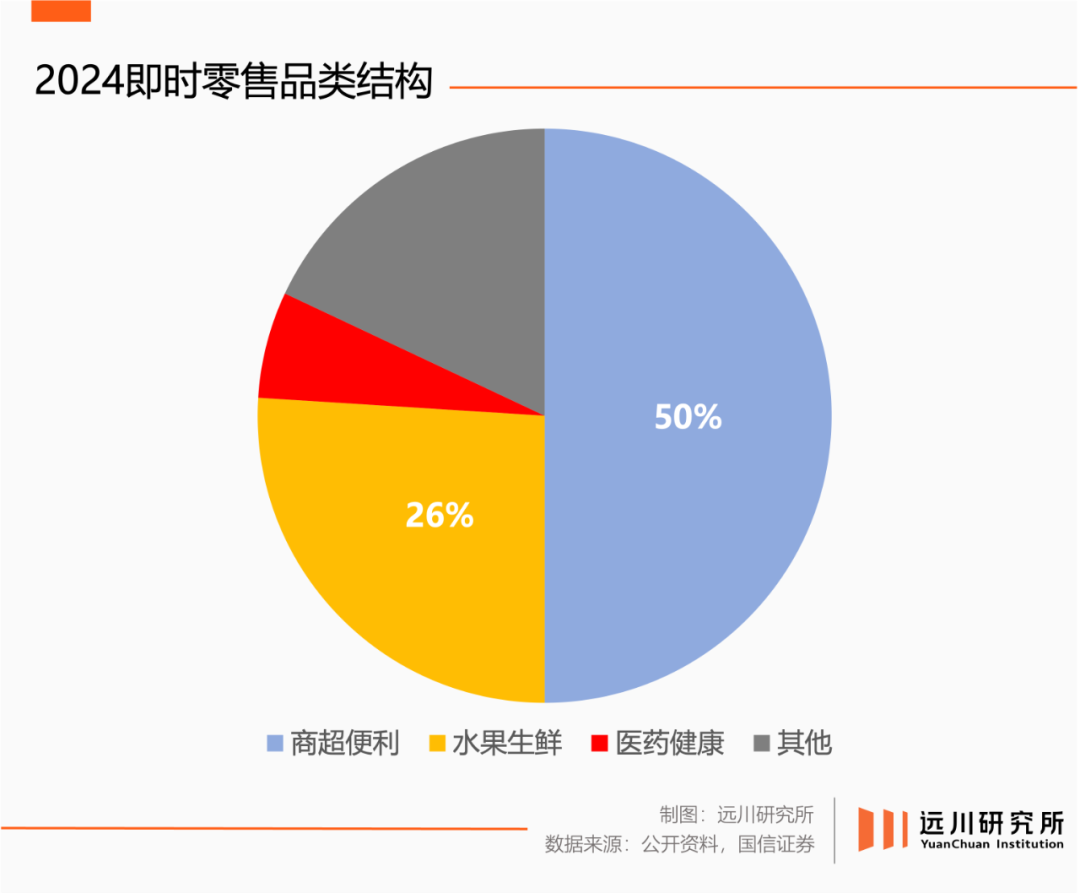 據(jù)國(guó)信證券,商超便利、醫(yī)藥健康和水果生鮮在即時(shí)零售大盤(pán)中的占比較高。雖有新零售實(shí)驗(yàn)試水多年,但門(mén)店上翻的改造思路效率有限,只輻射了小部分本就以線下渠道見(jiàn)長(zhǎng)的品牌。