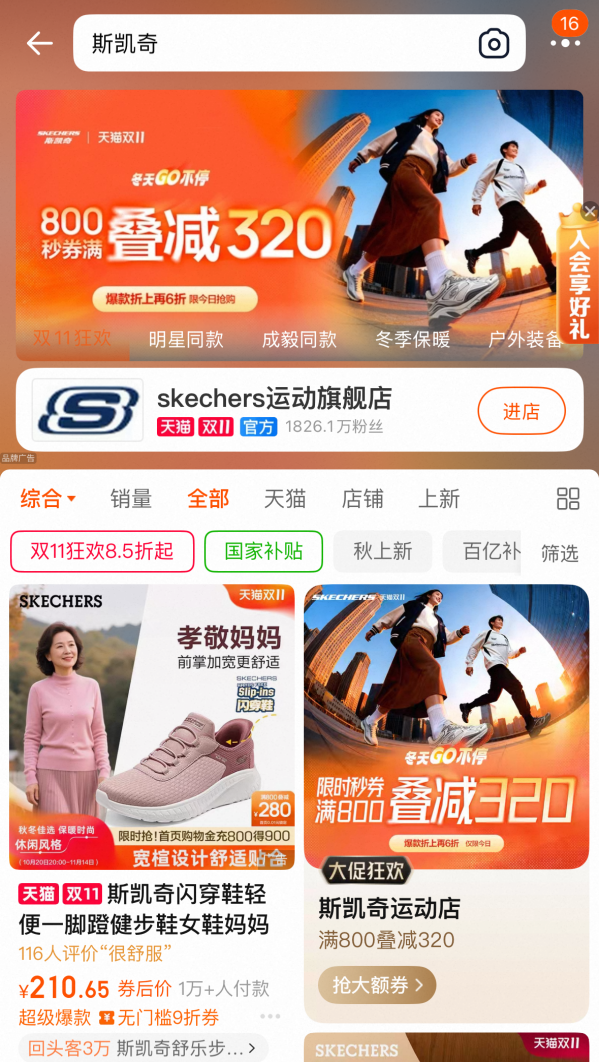 但這幾年,斯凱奇在年輕人面前悄悄失寵,在淘寶搜索“斯凱奇”,彈出的第一個廣告商品,明明白白告訴你,“孝敬媽媽,送斯凱奇”。