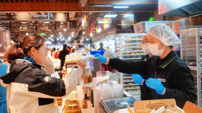 熟食區(qū)匯聚200多支商品,在引入品牌鹵味廠商的同時(shí),豐富現(xiàn)場(chǎng)制售品類,涵蓋韓式炸雞、奧爾良烤雞、手撕雞、鍋包肉、壽司拼盤等多地風(fēng)味;烘焙區(qū)引入90余支商品,提升現(xiàn)制現(xiàn)售占比,主推“桂花豐收的喜悅”“山茶花吐司”“草莓盒子蛋糕”等新品,聯(lián)合優(yōu)質(zhì)供應(yīng)商,以現(xiàn)場(chǎng)烘焙的香氣與品質(zhì)吸引顧客駐足。