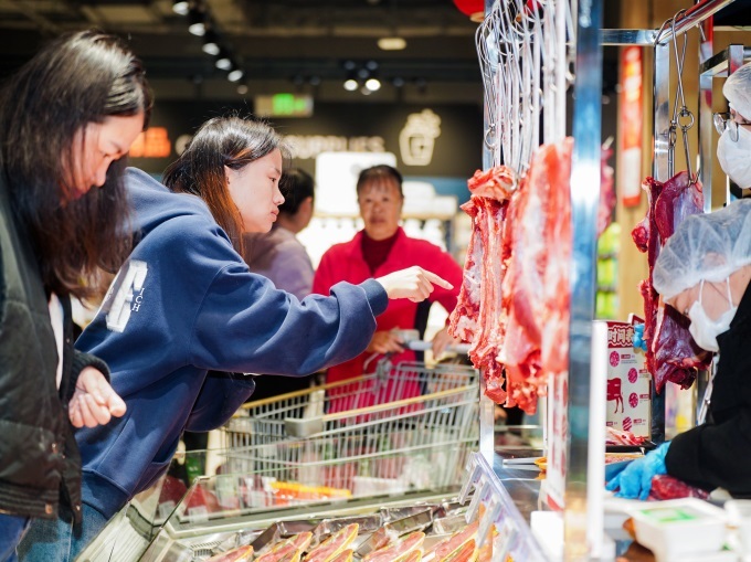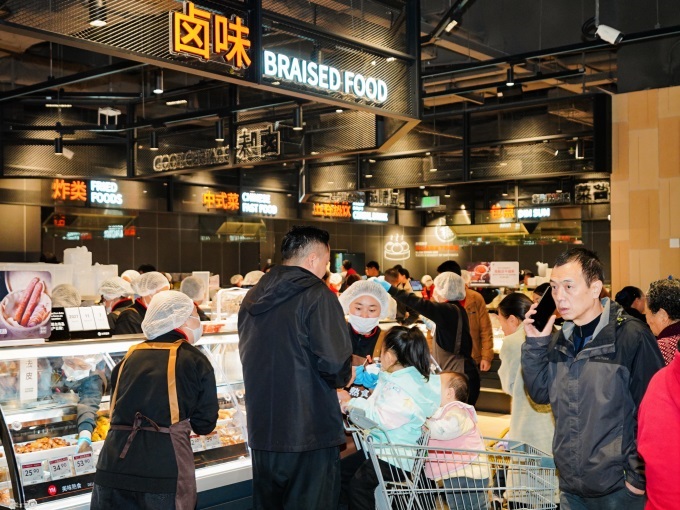 為增強賣場“煙火氣”,熟食與烘焙區(qū)域得到了重點強化。熟食板塊新增日邦壽司、雙匯熱鹵、九多肉多、豬堅強等品牌,商品支數(shù)達到360支。其中,網(wǎng)紅商品“小甜腸”以其外酥里嫩、爆汁口感及多種烹飪適應(yīng)性受到關(guān)注;“國潮炸雞”強調(diào)現(xiàn)制現(xiàn)售與8小時腌制,主打外酥里嫩。此外,顧客還能在此買到胖東來同款的香辣豬蹄、秘鹵肉腸及韓式炸雞。