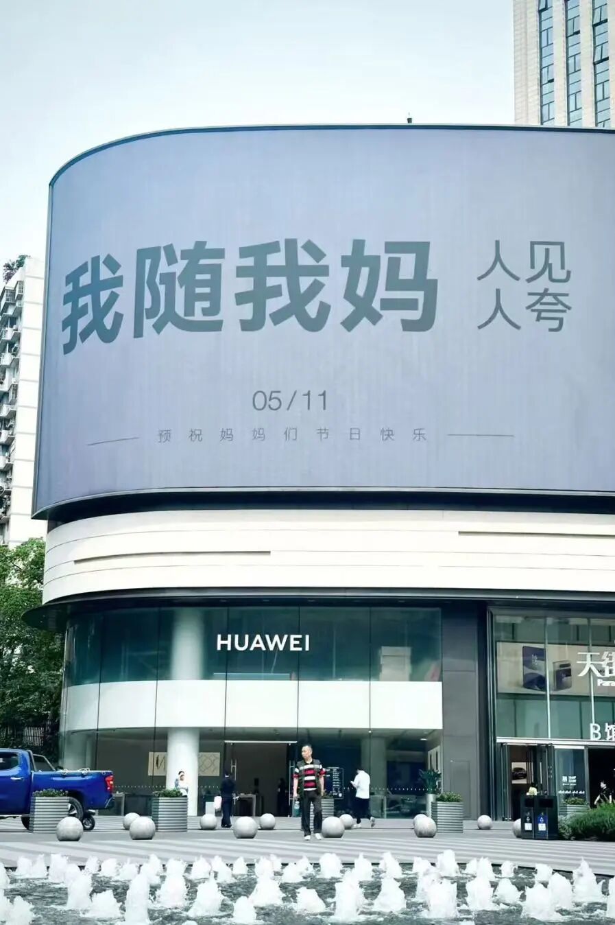 今年母親節(jié)期間,龍湖重慶時代天街團隊在大屏打上了“我隨我媽,人見人夸”的標(biāo)語,以第一視角道出了許多當(dāng)代人未曾說出口的對母親的驕傲。這種借以情感進(jìn)行的公共表達(dá),也讓標(biāo)語成功吸引了不少路人駐足拍照。