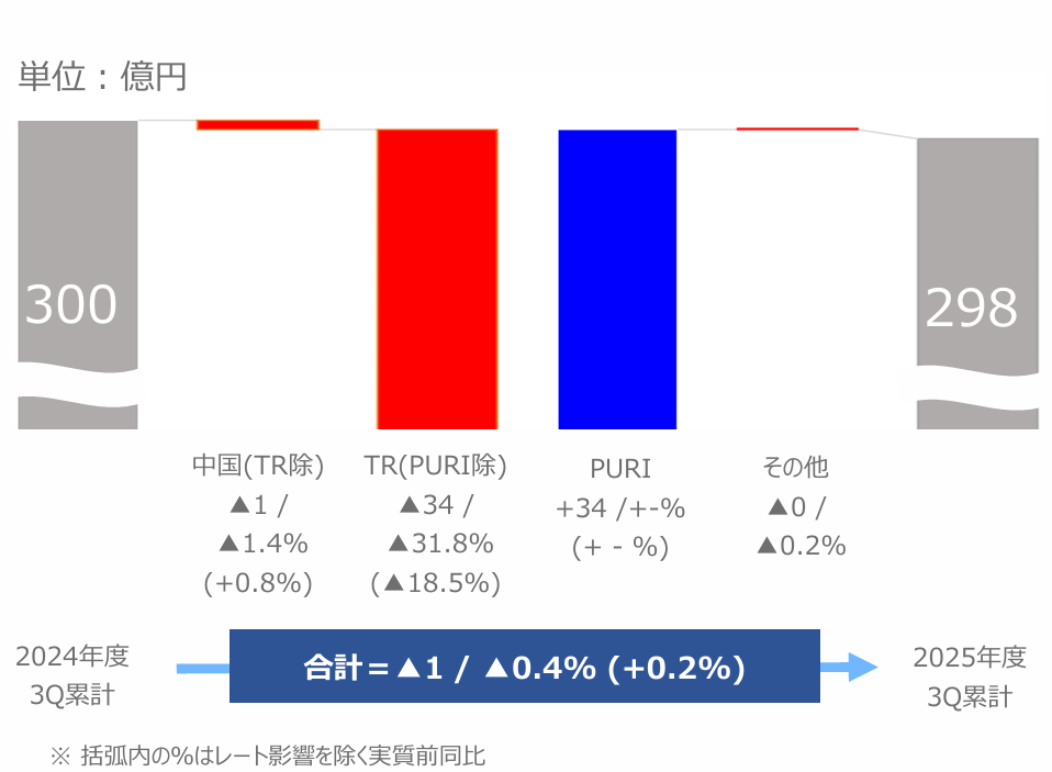另從財報公布的各銷售渠道數(shù)據(jù)來看,2025年前9個月,中國市場電子商務(wù)(EC)凈銷售額為67億日元(人民幣約3.09億元),相較于去年同期的72億日元(人民幣約3.32億元),下滑了6.94%。同樣,中國旅游零售渠道(TR)凈銷售額,則從2024年的71億日元(人民幣約3.28億元)下滑至2025年的51億日元(人民幣約2.35億元),計算可知,同比大跌28.17%。