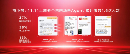 京東探索研究院相關(guān)負(fù)責(zé)人介紹,京東11.11期間,超300萬(wàn)商家借助JoyAI全線產(chǎn)品實(shí)現(xiàn)經(jīng)營(yíng)升級(jí)。數(shù)字人直播服務(wù)超4萬(wàn)家品牌商,累計(jì)帶動(dòng)GMV超23億元。京小智5.0服務(wù)超百萬(wàn)商家,大模型導(dǎo)購(gòu)服務(wù)量達(dá)1.6億次。零售客服全流程接入AI面試,參面率同比提升70%,客服承接能力提升33%。